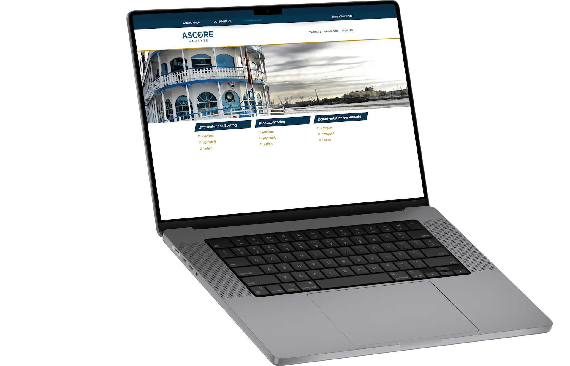 Senden Sie uns über info@ascore.softfair-apps.de Ihre Kontaktdaten und geben Sie die gewünschten Bereiche (Leben, Kranken, Komposit) an.