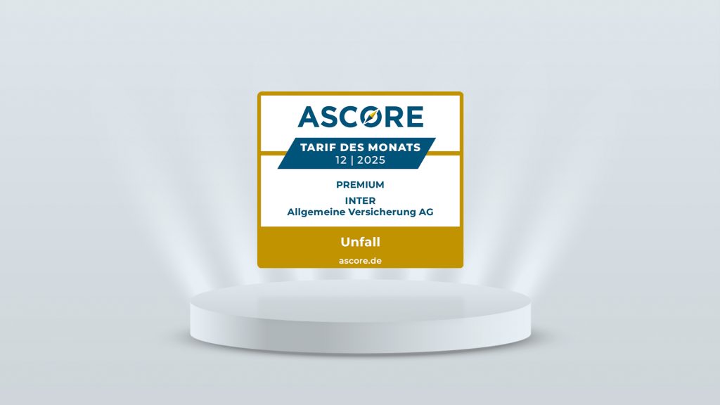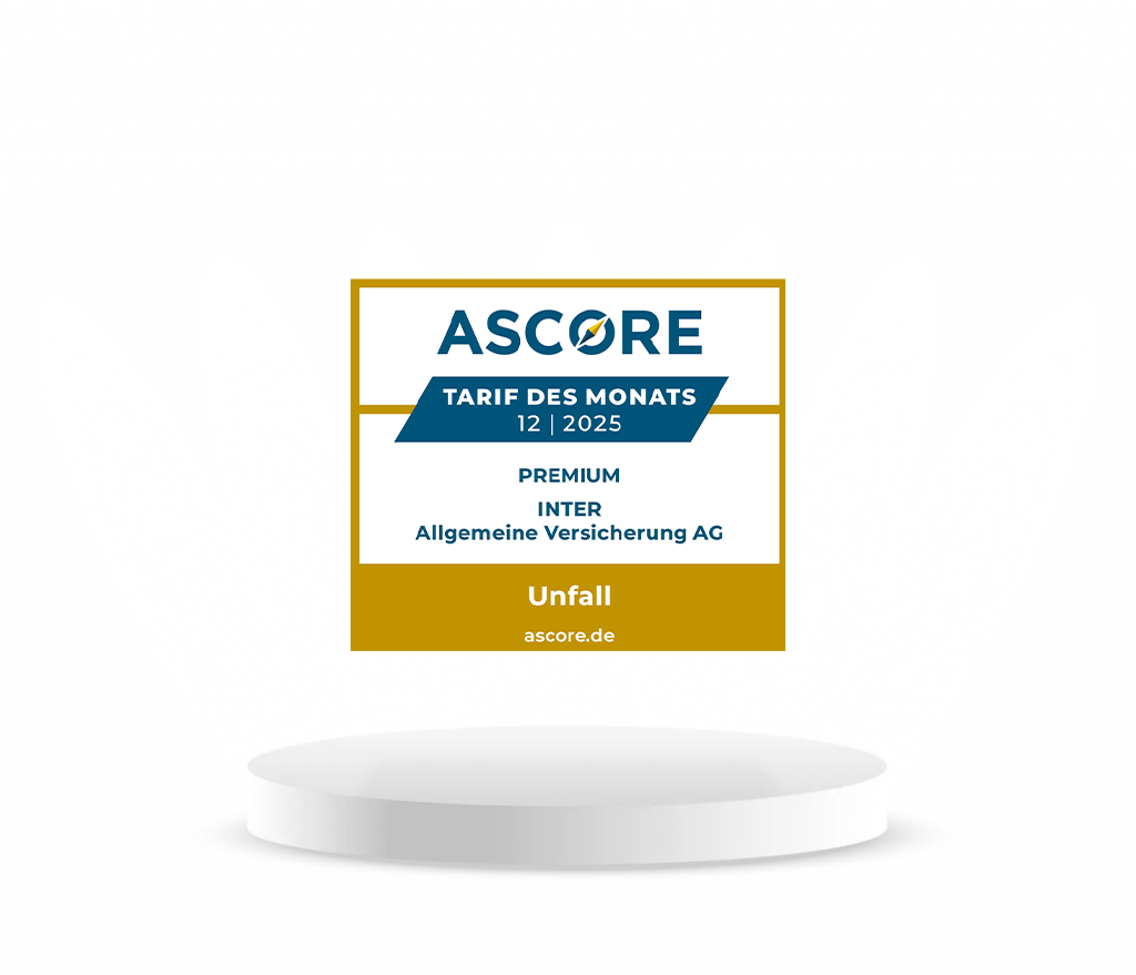 Der Tarif „PREMIUM“ der INTER Allgemeine Versicherung AG in der Kategorie Unfall erhält von ASCORE Analyse die Auszeichnung Tarif des Monats.
